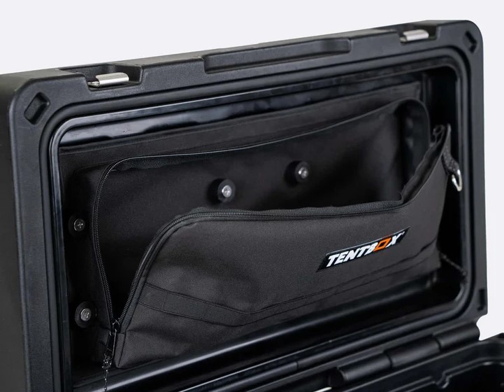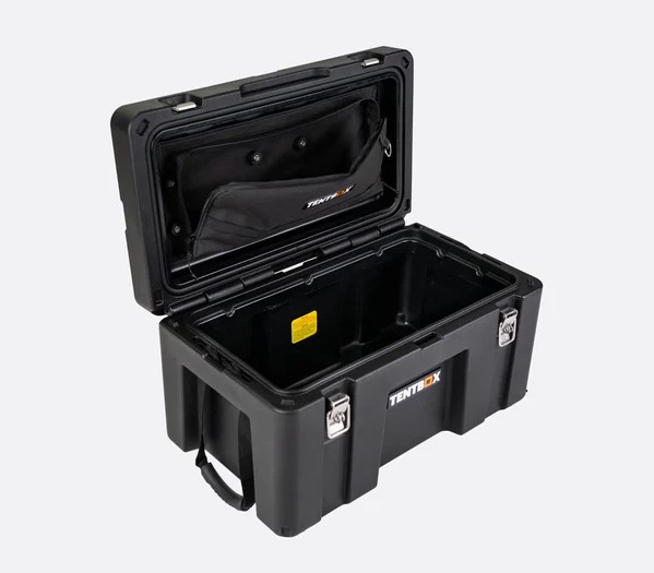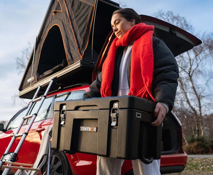 TentBox Chuck Box: Eine robuste Aufbewahrungsbox für deine TentBox-Abenteuer – einfach in den Kofferraum deines Autos werfen und los geht’s! Sie ist so stabil, dass du darauf stehen kannst (ideal zum Schließen deines Dachzelts) und eignet sich perfekt als zusätzlicher Sitzplatz am Lagerfeuer. Die Box ist vollgepackt mit praktischen Funktionen wie einem Organizer im Deckel, Befestigungskanälen und einem nützlichen Flaschenöffner. Dank der wasserdichten Versiegelung bleibt deine Ausrüstung vor den Elementen geschützt, und die abschließbaren Stahlriegel bieten zusätzliche Sicherheit. Außerdem ist sie stapelbar.