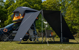 Die Tunnelmarkise lässt sich in nur wenigen Minuten nahtlos mit deiner TentBox Lite 2.0 verbinden und deckt sogar die Leiter ab. So entsteht der ultimative Wohnbereich, der dich vor allen Witterungsbedingungen schützt.